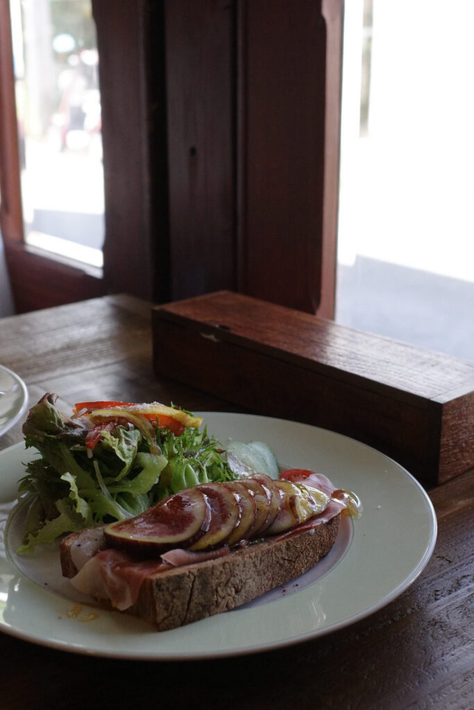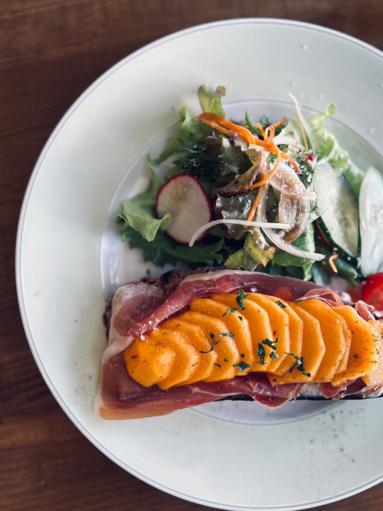 季節のタルティーヌと題しまして、旬なフルーツ、ハチミツ、生ハムなどを乗せて